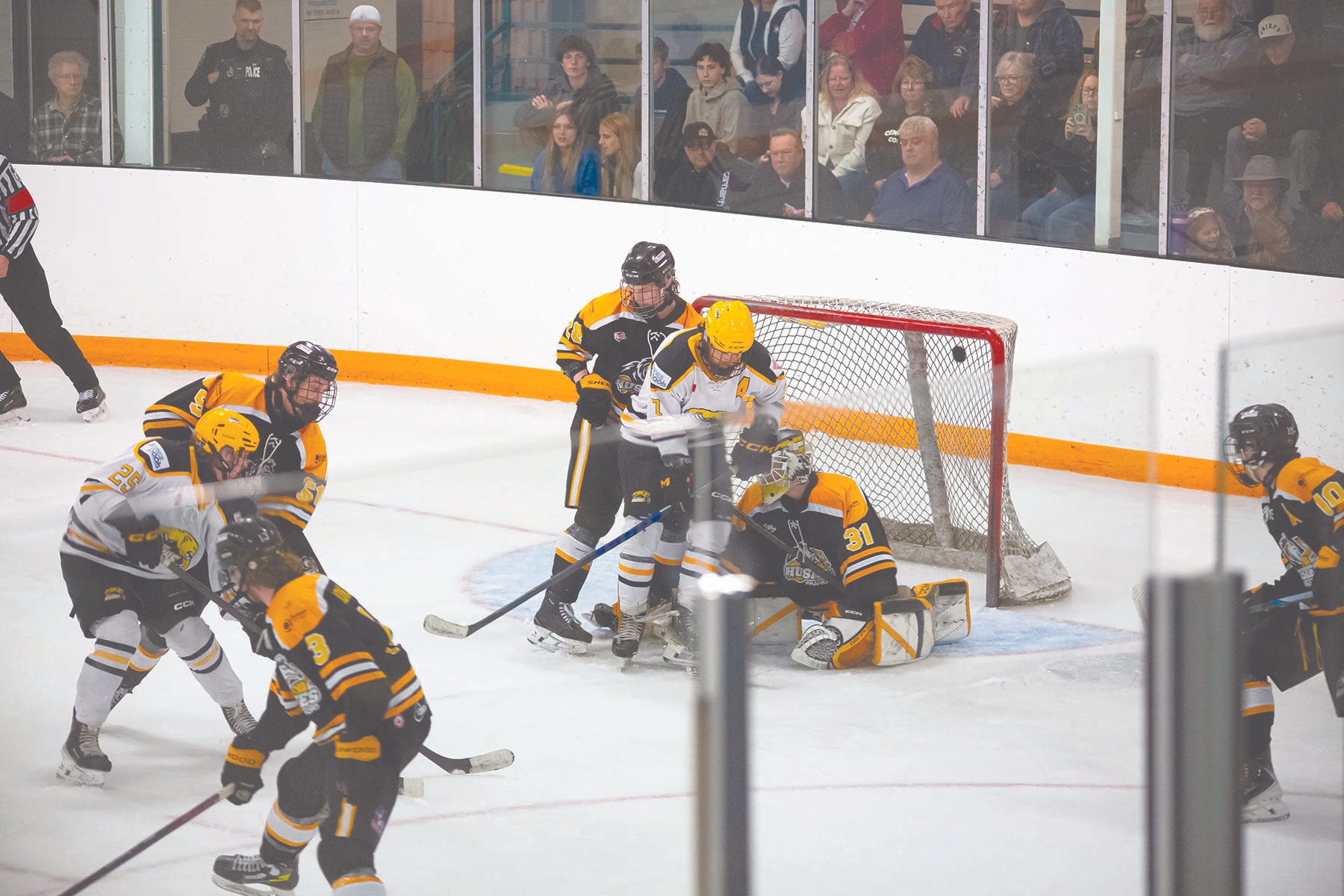 THE FINAL SHOT - The Bruins score what would prove to be their final goal of the 2025-2026 season during last Tuesday’s Eastern Conference series game against the Frankford Huskies. The Bruins lost the game 4-3. Photo by John Cavers