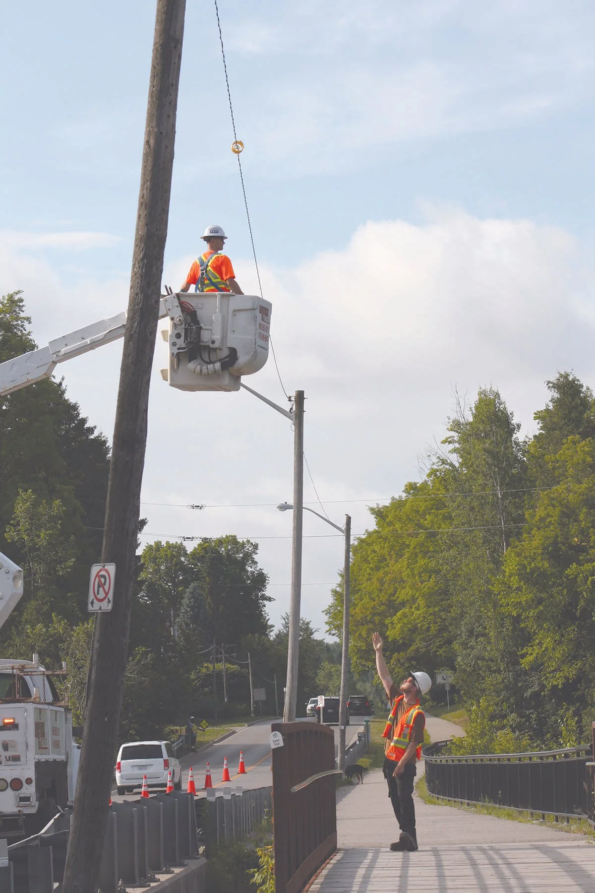 Meek Electric donated its time and equipment to install the diverters. Department of Public Works director Courtney Clark was also involved in getting the diverters installed, as was councillor Zed Pickering. Concerned community members Bob Kirvan, David Moseley, and Helen Johnson also advocated for “gentle help” for the injured birds.