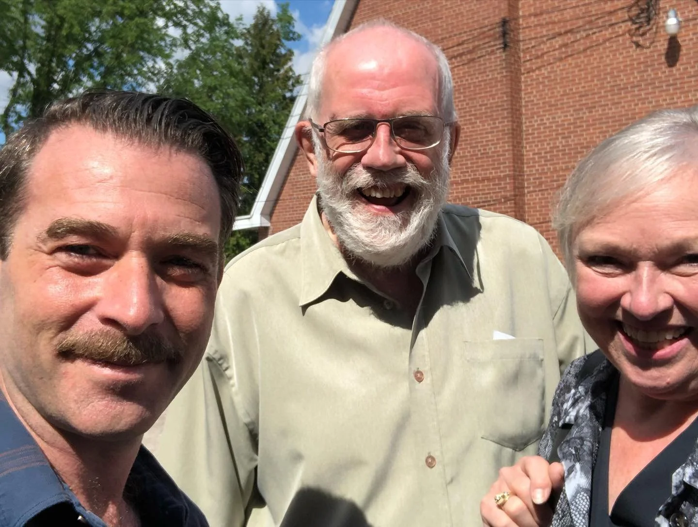 Uxbridge Cosmos founder and original publisher Conrad Boyce, centre, with his wife, Lisa, and an unnamed friend. Cosmos file photo