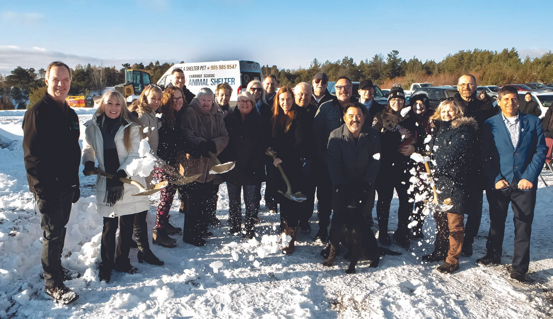 It was smiles all round on Tuesday afternoon when members of council from both Uxbridge and Scugog townships, as well as animal control officers, New Animal Shelter of Uxbridge-Scugog volunteers and project benefactors gathered to break the ground (or the snow) on the new animal shelter. The new shelter is located on Lake Ridge Road, just south of Reach Street, in the Township of Uxbridge. The project has been in the works since 2010, and the new facility hopes to have a soft opening in October 2026. Photo by John Cavers